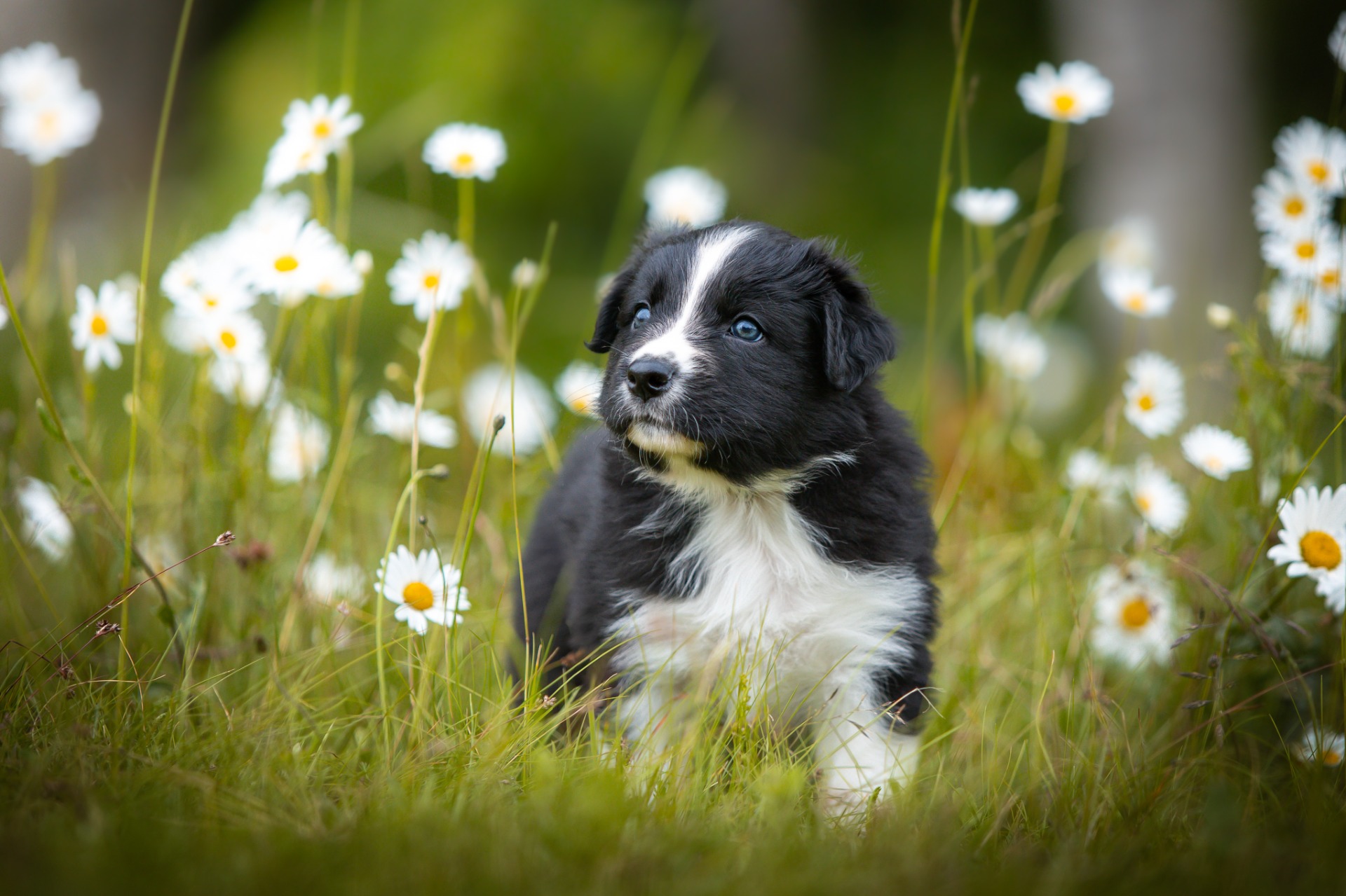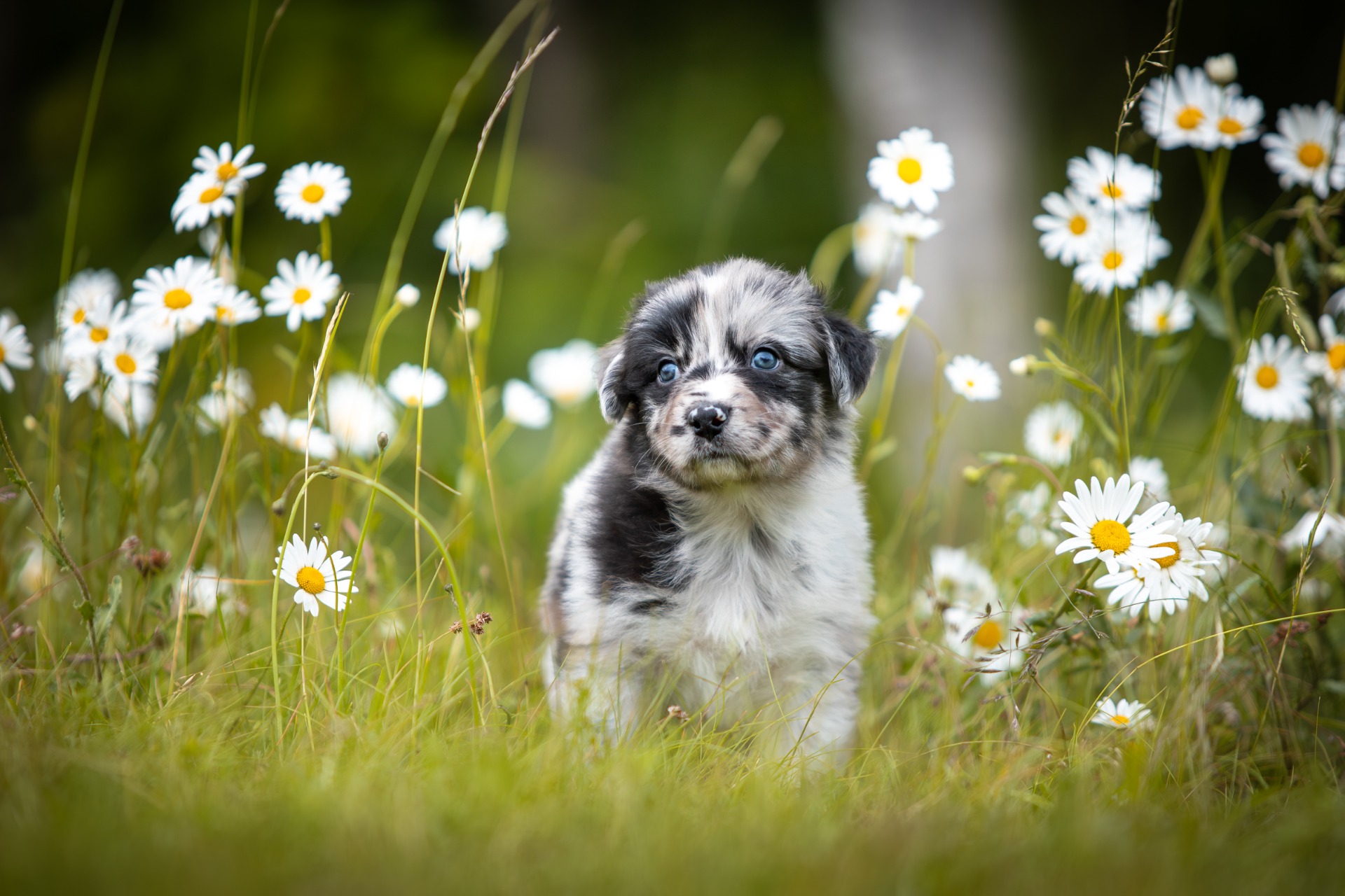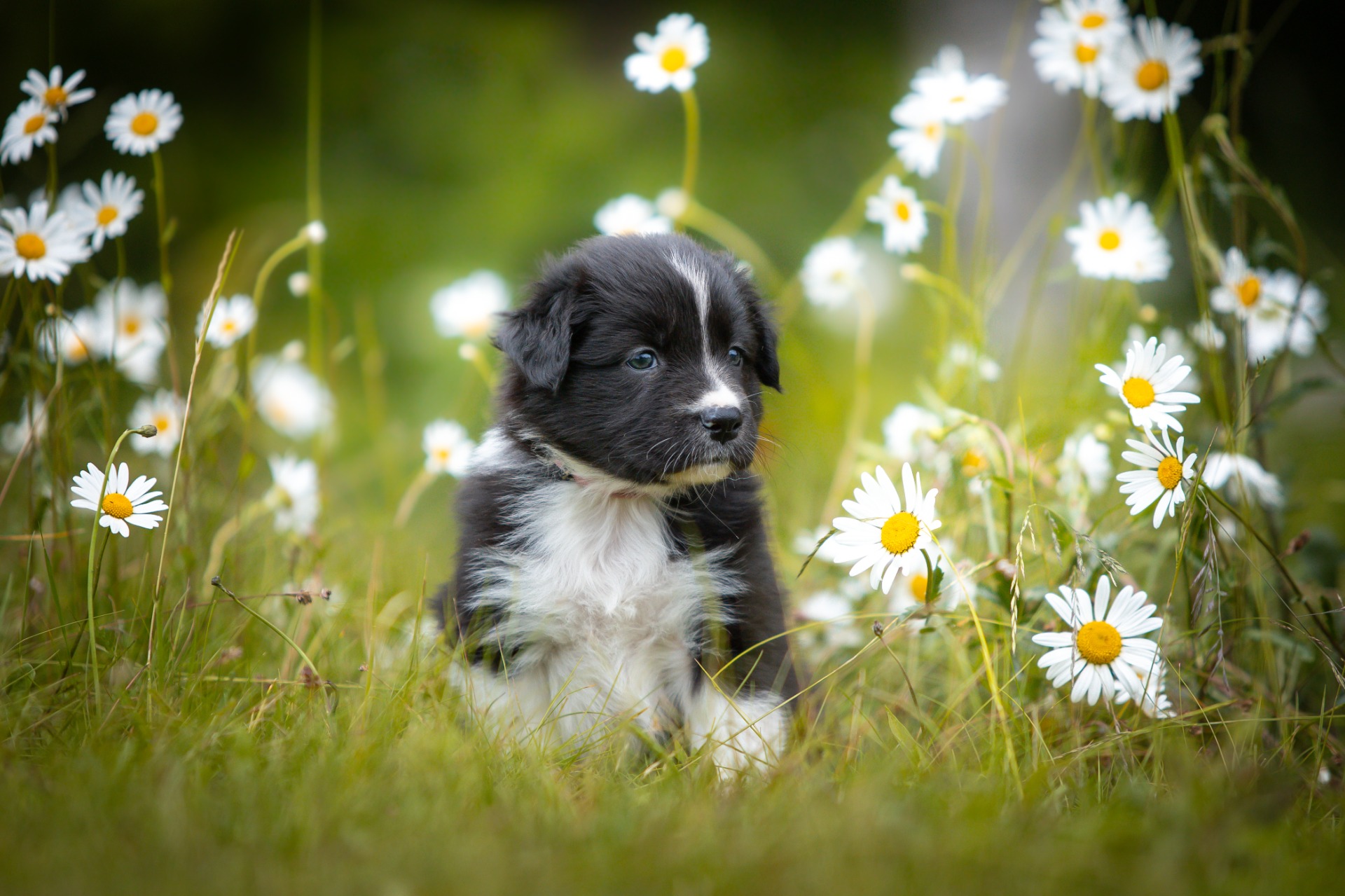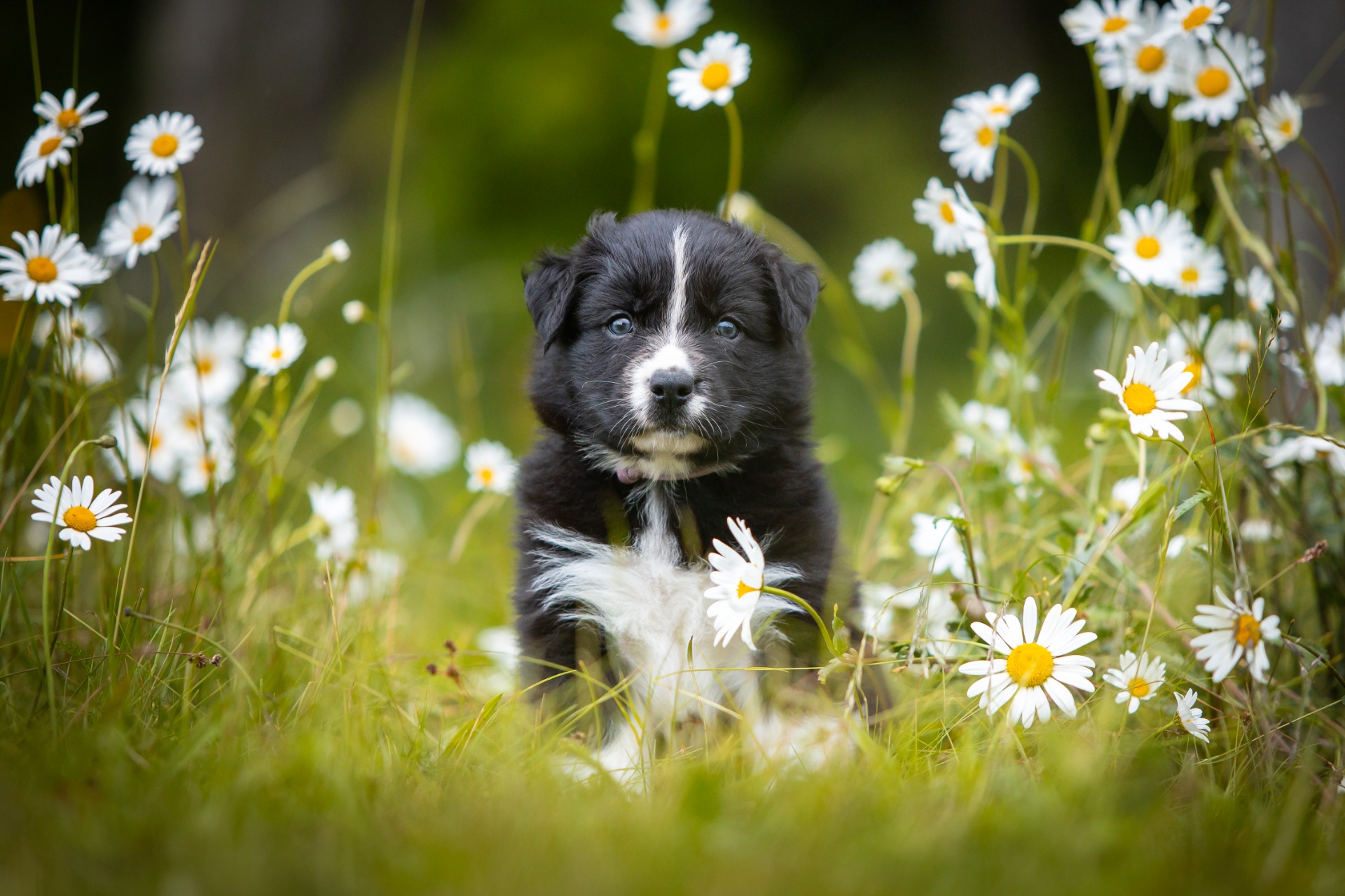 Všechna štěňátka jsou v barvě black bi, až na jednoho merle psa.