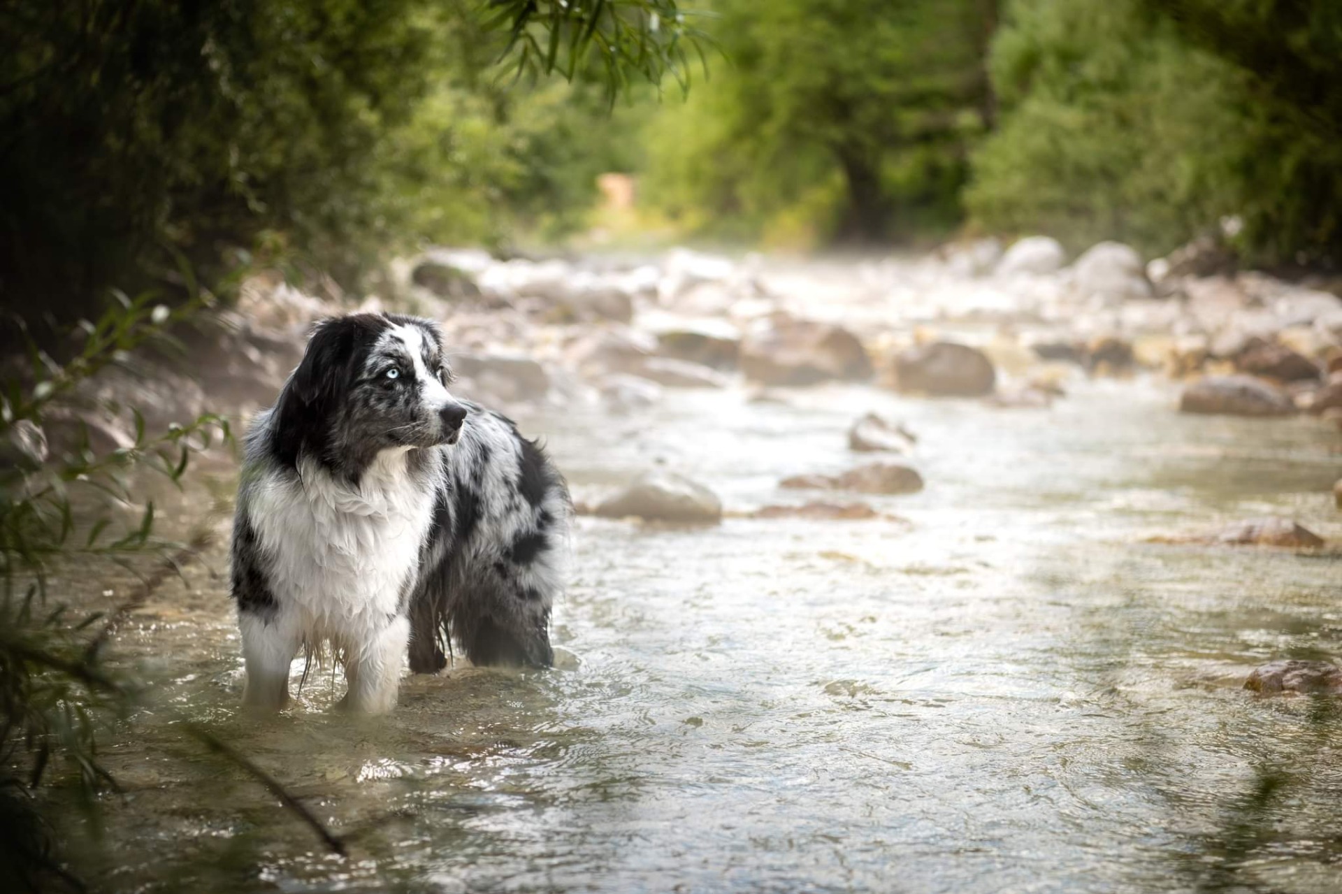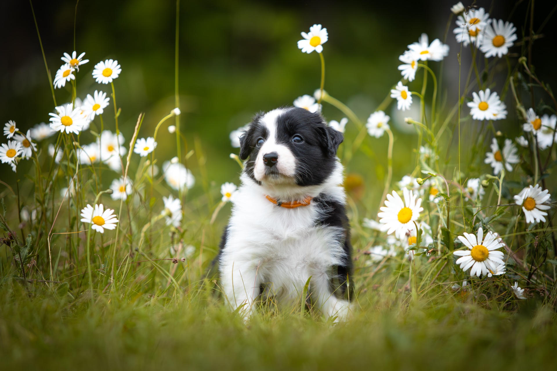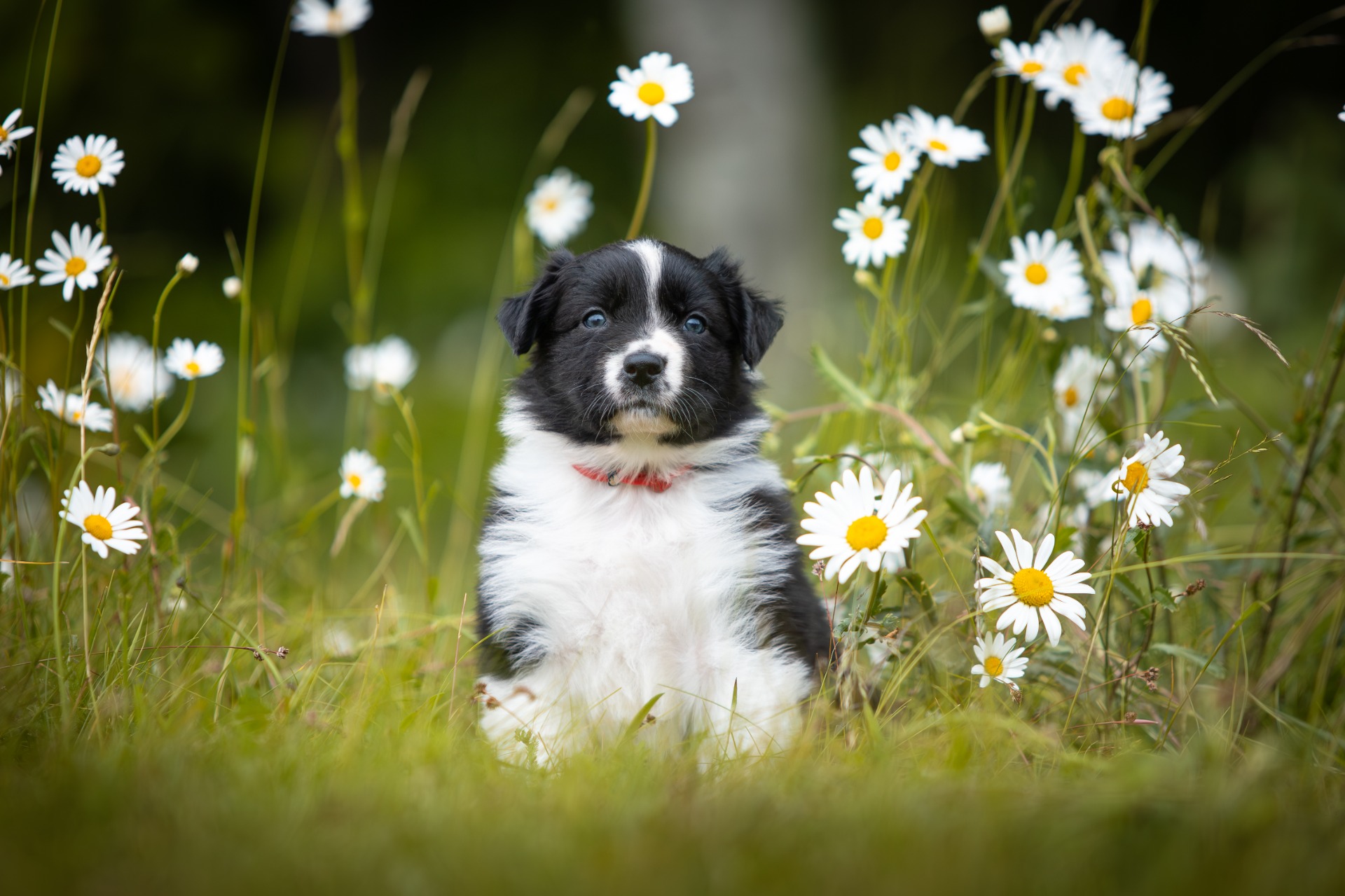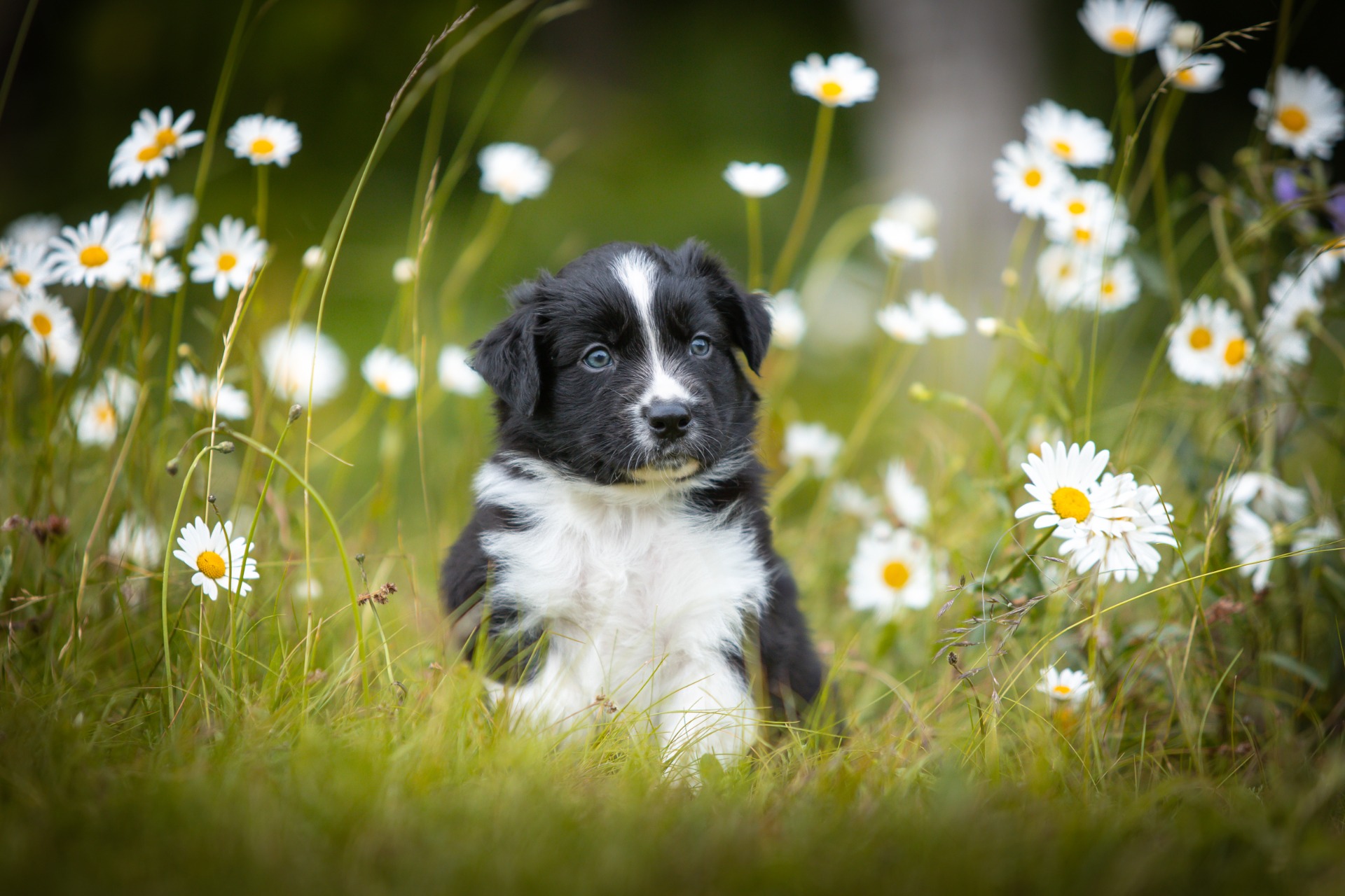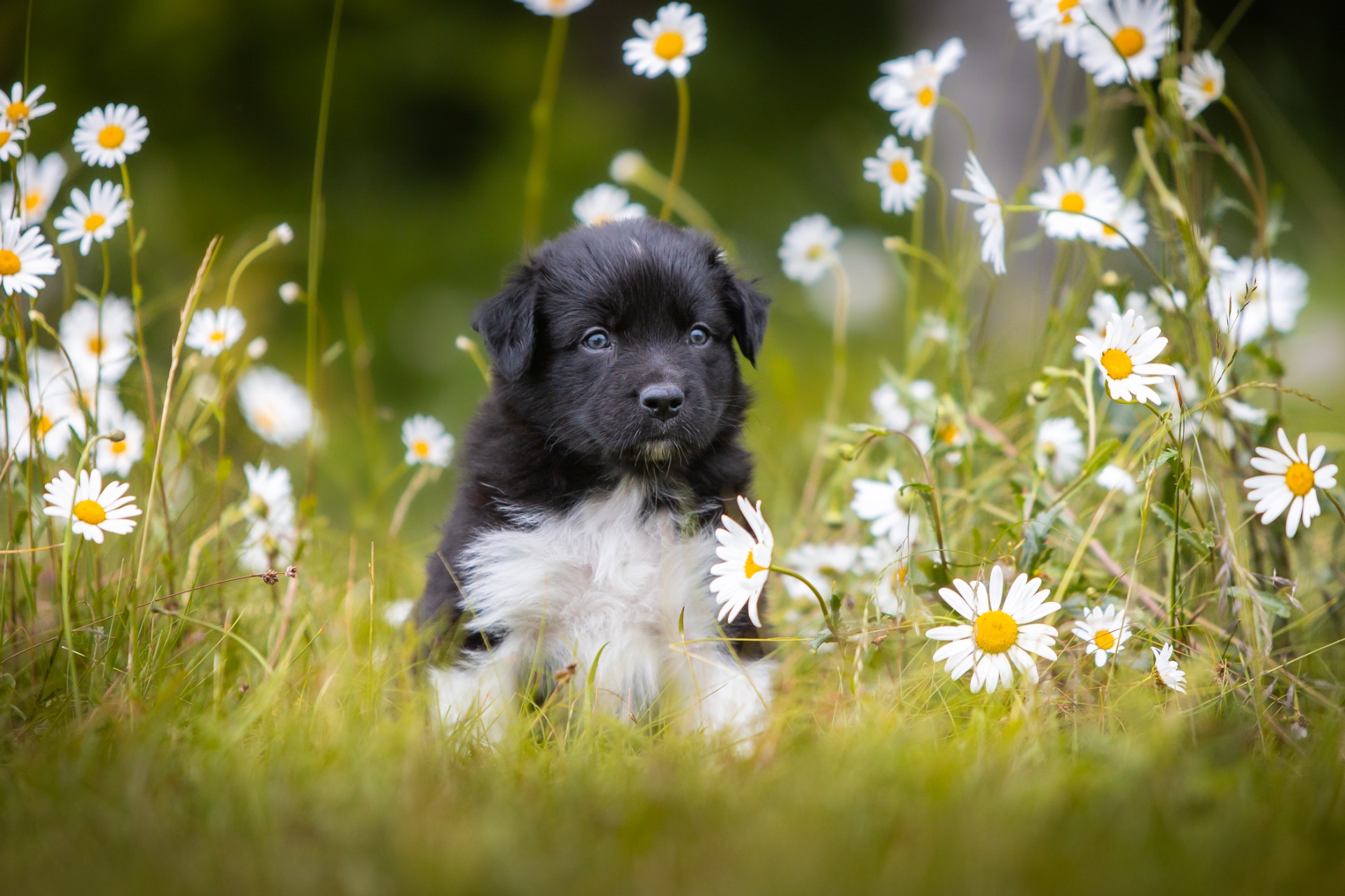 Všechna štěňátka jsou v barvě black bi, až na jednoho merle psa.